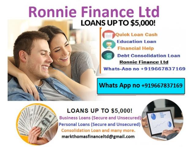 Are you looking for finance? Do you need loan for to settle your bills, like personal loan, finance issue, business loan to setup your own business or business expandion, project funding and your financial score is very low, I am able to fund you the amount you need ranging from $1000-$50M and a suitable Interest rates 3% that will makes life easier for you. more info Kindly contact me via email: markthomasfinanceltd@gmail.com